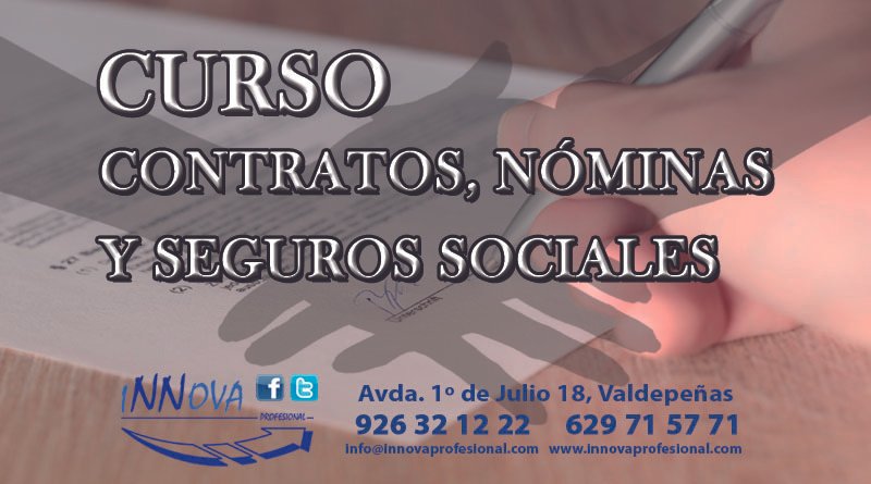 NUEVOS CURSOS CURSO DE CONTRATOS, NÓMINAS Y SEGUROS SOCIALES 10 julio, 2016 innova LLÁMANOS O VISITA NUESTRAS INSTALACIONES PARA MÁS INFORMACIÓN. TELÉFONO: 629715771.